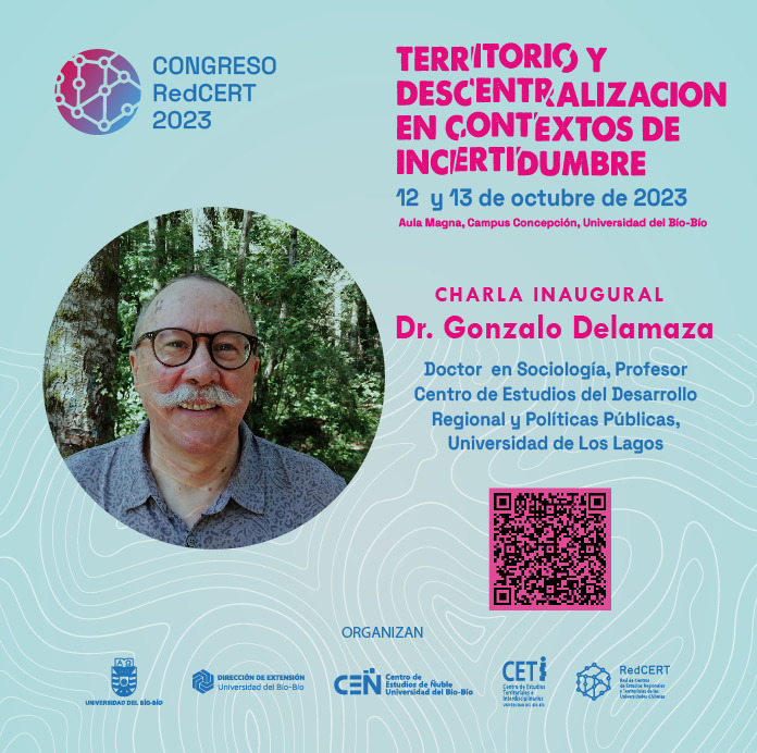 El Dr. Gonzalo Delamaza Escobar del  Centro de Estudios del Desarrollo Regional y Políticas Públicas, CEDER de la Universidad de Los Lagos. Dirección del Doctorado de Ciencias Sociales en Estudios Territoriales, dictará la charla inaugural del er CONGRESO y 9no Encuentro RedCERT CHILE 2023 Territorio y Descentralización en Contextos de Incertidumbre Cabe recordar que el