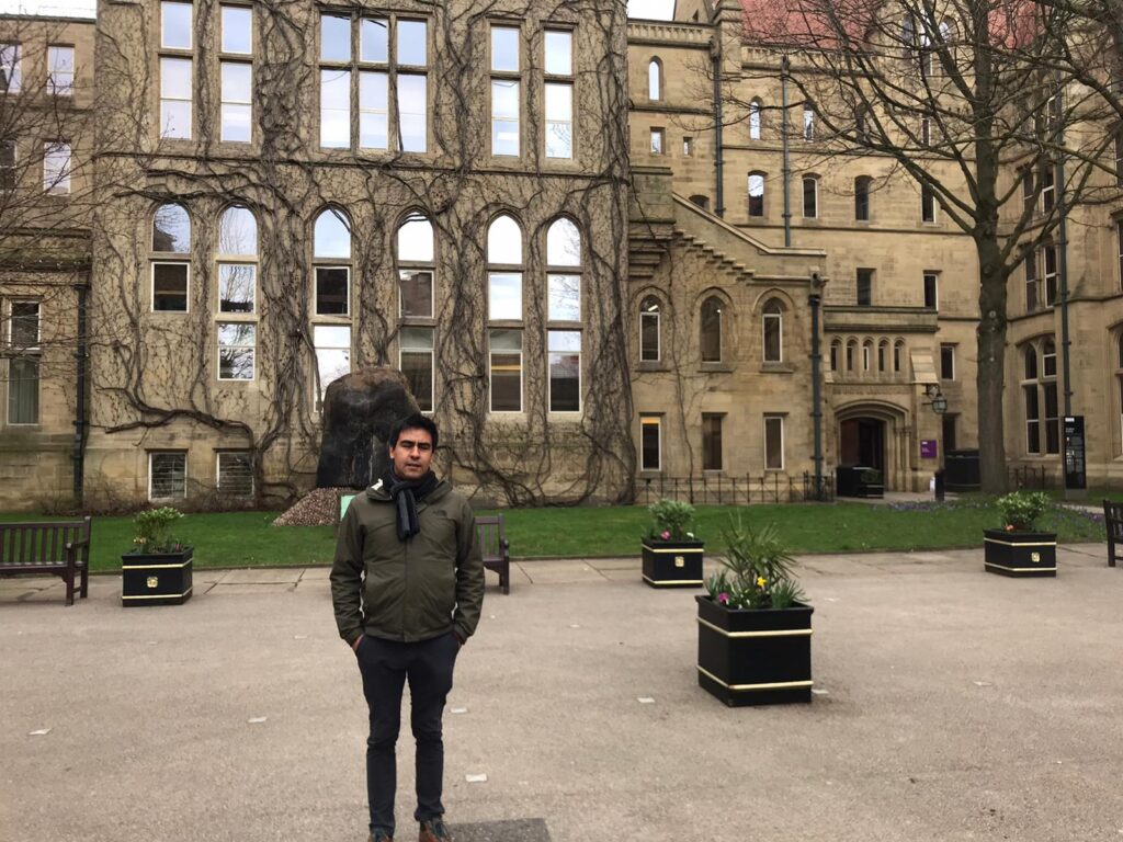 El académico Dr. Felipe Saravia Cortés, investigador en la línea de Políticas públicas y gobernanza del Centro de Estudios Territoriales e Interdisciplinarios de la Universidad del Bío-Bío (CETI UBB) efectúa un trabajo de campo en el área del Trabajo Social en la Universidad de Manchester del Reino Unido de Gran Bretaña e Irlanda del Norte.