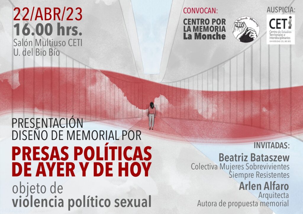 El Centro por la Memoria La Monche y Colectiva Urdiendo Memorias, invitan a presentación de la Propuesta arquitectónica, Memorial por presas políticas de ayer y de hoy, objeto de Violencia político Sexual, teniendo como expositoras a la compañera Beatriz Bataswez de la Colectiva Mujeres Sobrevivientes y siempre combatientes y la arquitecta Arlen Alfaro, autora del